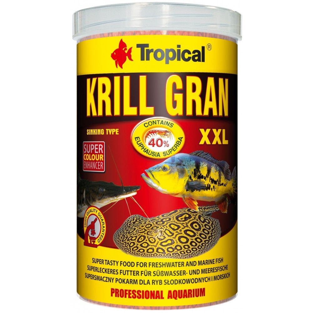 Büyük omnivor ve etobur akvaryum balıkları türleri için, renk artırıcı özelliklere sahip , batan formda, olağanüstü yüksek Antarktik krili içeriğine (%40) sahip büyük granüller içeren süper lezzetli yem .